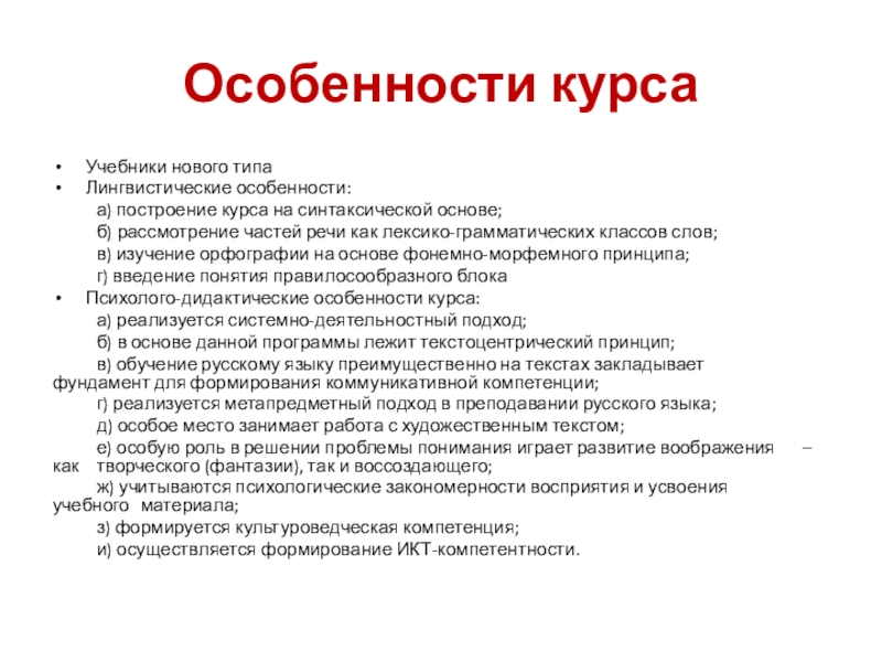 Психолого-дидактические особенности курса: