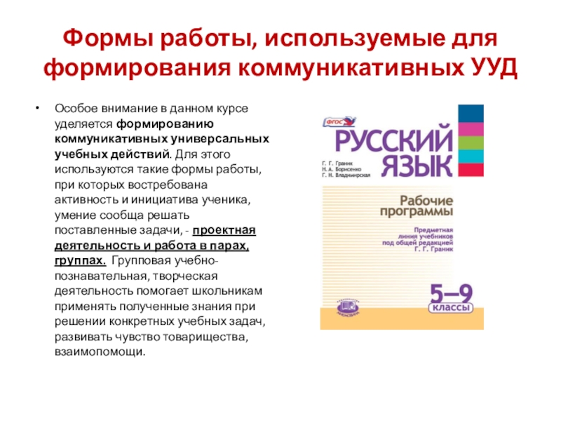 Слайд 3Формы работы, используемые для формирования коммуникативных УУД