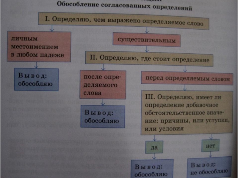 На слайде представлена самоинструкция по теме «Обособление согласованных