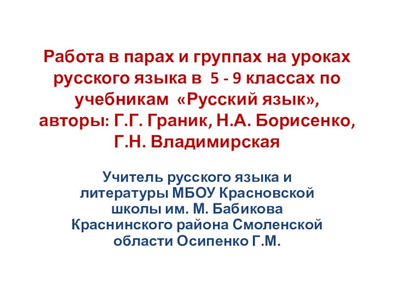 Слайд 1Работа в парах и группах на уроках русского языка в 5
