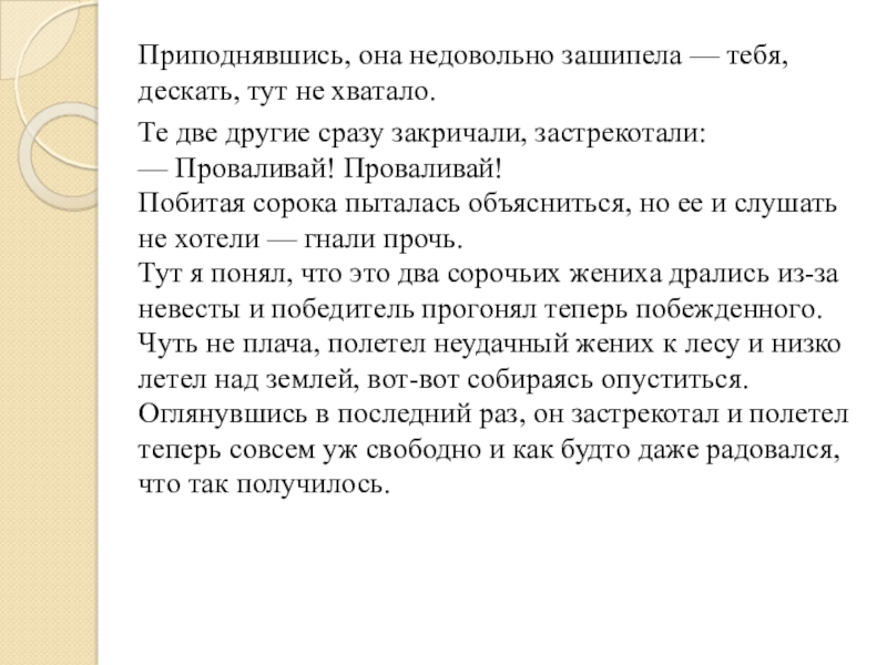 Слайд 12Приподнявшись, она недовольно зашипела — тебя, дескать, тут не хватало.