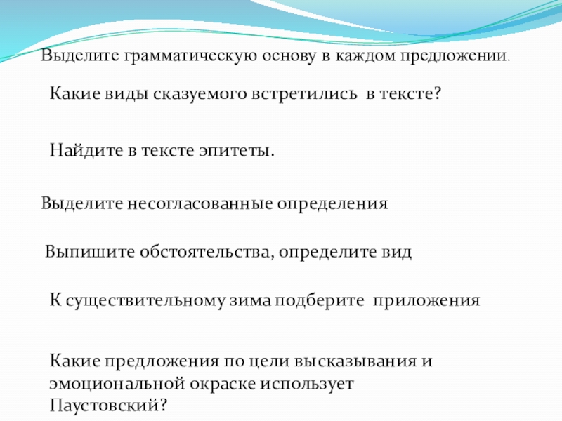 Слайд 10Выделите грамматическую основу в каждом предложении.