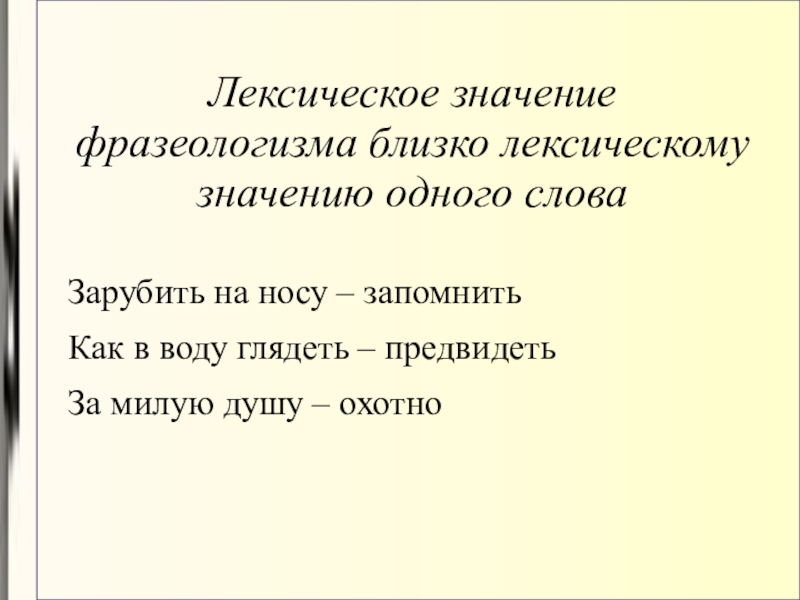 Слайд 18Лексическое значение фразеологизма близко лексическому значению одного слова