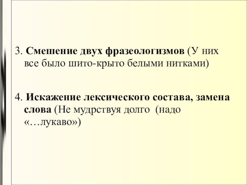 Искажение лексического состава, замена слова (Не мудрствуя долго (надо «…лукаво»)