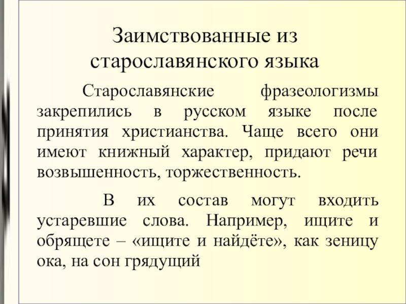 в русском языке после принятия христианства. Чаще всего они имеют книжный характер, придают речи возвышенность, торжественность.