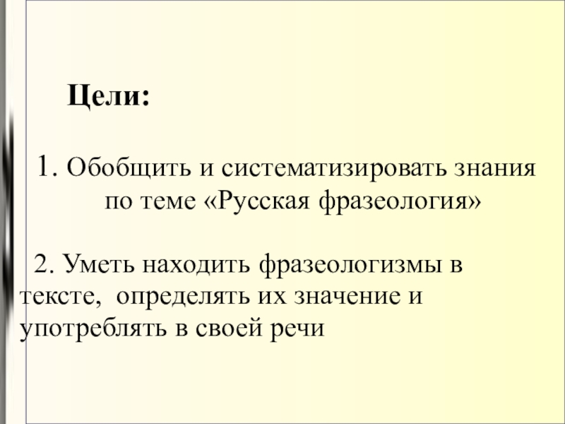 2. Уметь находить фразеологизмы в тексте, определять их значение и употреблять в своей речи