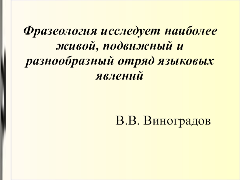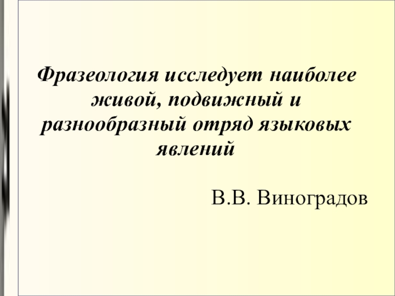 Слайд 1Фразеология исследует наиболее живой, подвижный и разнообразный отряд языковых явлений