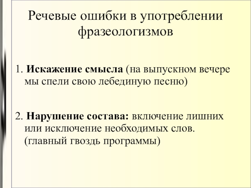 Слайд 28Речевые ошибки в употреблении фразеологизмов