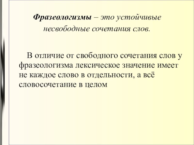 Фразеологизмы – это устойчивые несвободные сочетания слов.