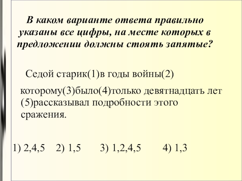 Слайд 14В каком варианте ответа правильно указаны все цифры, на месте которых