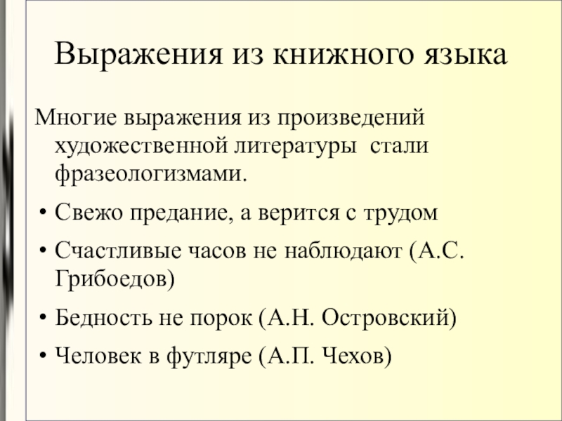 Многие выражения из произведений художественной литературы стали фразеологизмами.