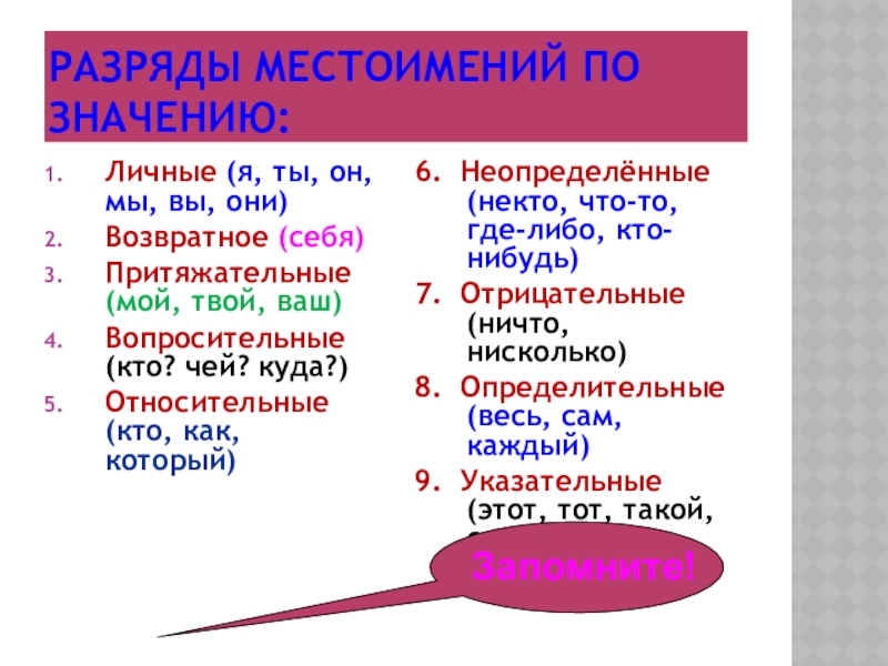 6. Неопределённые (некто, что-то, где-либо, кто-нибудь)