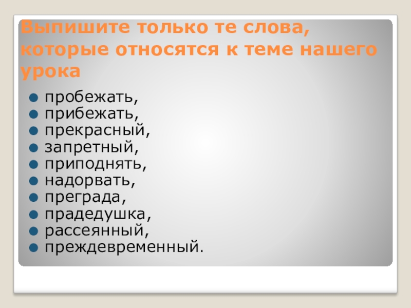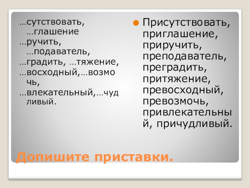 ПРЕДЛОЖИТЬ, ПРЕЛОМИТЬ, ПОДГОТОВИТЬ,