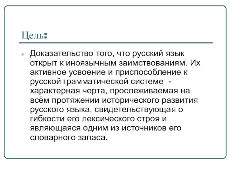 Доказательство того, что русский язык открыт к иноязычным заимствованиям. Их активное