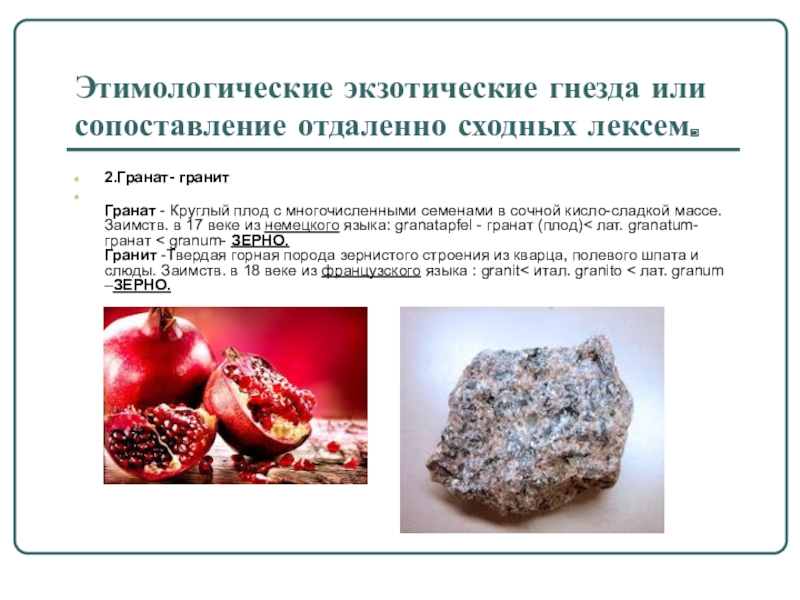 Слайд 36Этимологические экзотические гнезда или сопоставление отдаленно сходных лексем.