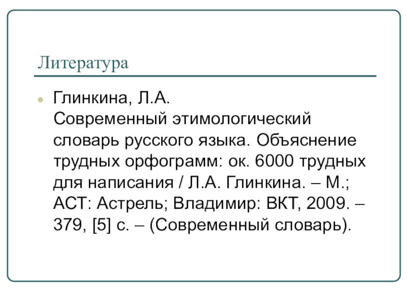 трудных для написания / Л.А. Глинкина. – М.; АСТ: Астрель; Владимир: ВКТ, 2009. – 379, [5] с. – (Современный словарь).