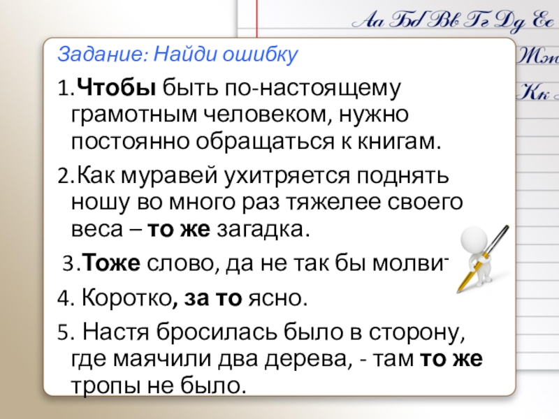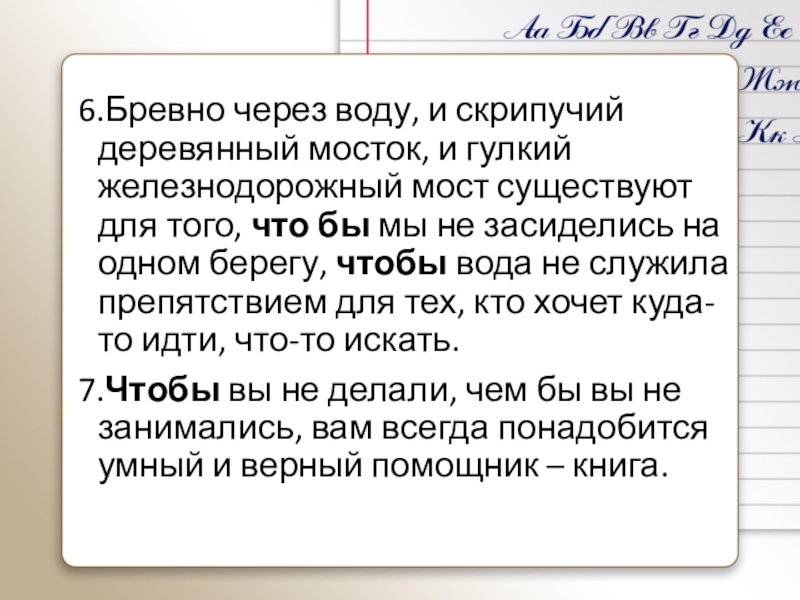 1.Чтобы быть по-настоящему грамотным человеком, нужно постоянно обращаться к книгам.