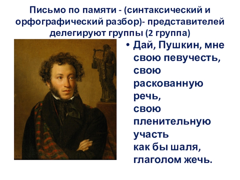 Письмо по памяти - (синтаксический и орфографический разбор)- представителей делегируют группы (2 группа)