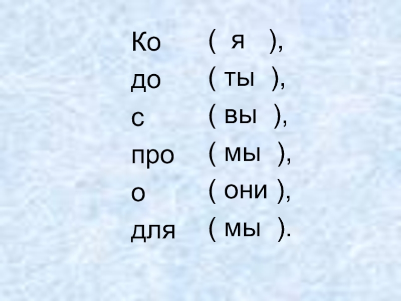 Кодо с проо для ( я  ),( ты ),( вы ),( мы ),( они ),( мы