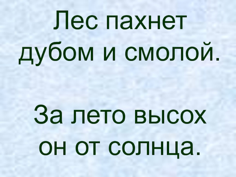 Слайд 3Лес пахнет дубом и смолой. За лето высох он от солнца.