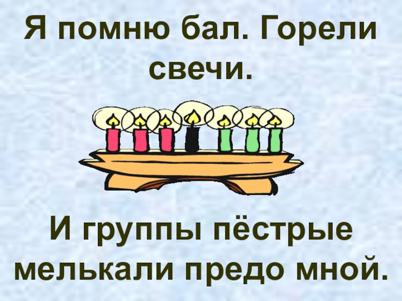 Слайд 4Я помню бал. Горели свечи. И группы пёстрые мелькали предо мной.