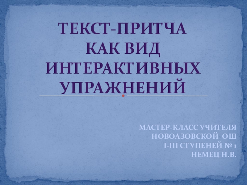 ТЕКСТ-ПРИТЧА КАК ВИД ИНТЕРАКТИВНЫХ УПРАЖНЕНИЙ