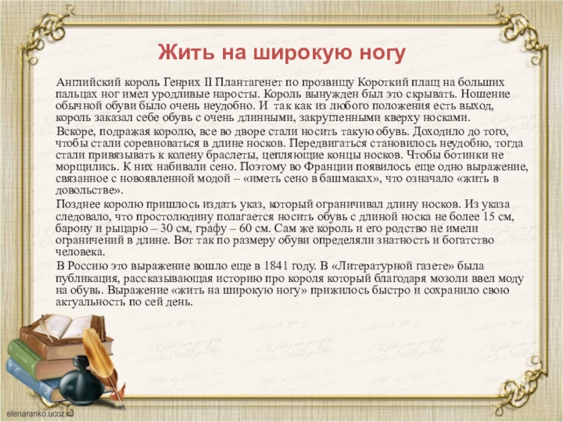 Жить на широкую ногу    Английский король Генрих II Плантагенет по прозвищу Короткий плащ на