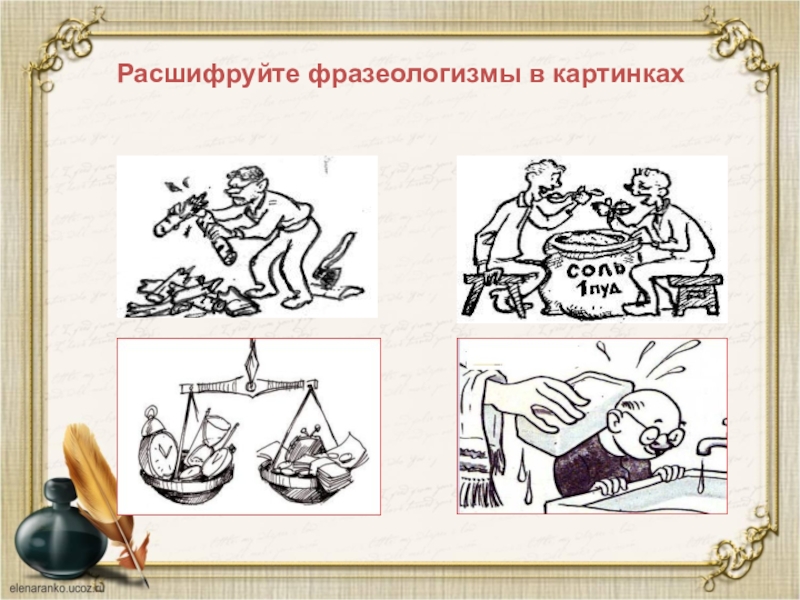 Слайд 11Расшифруйте фразеологизмы в картинках