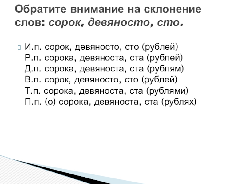 Обратите внимание на склонение слов: сорок, девяносто, сто.