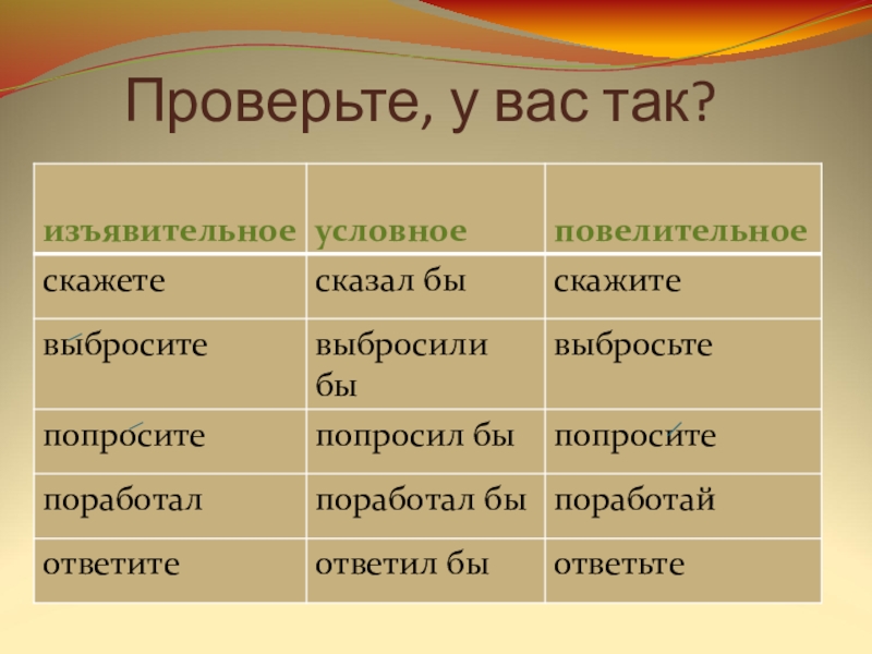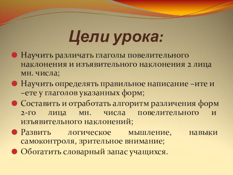 Научить различать глаголы повелительного наклонения и изъявительного наклонения 2 лица