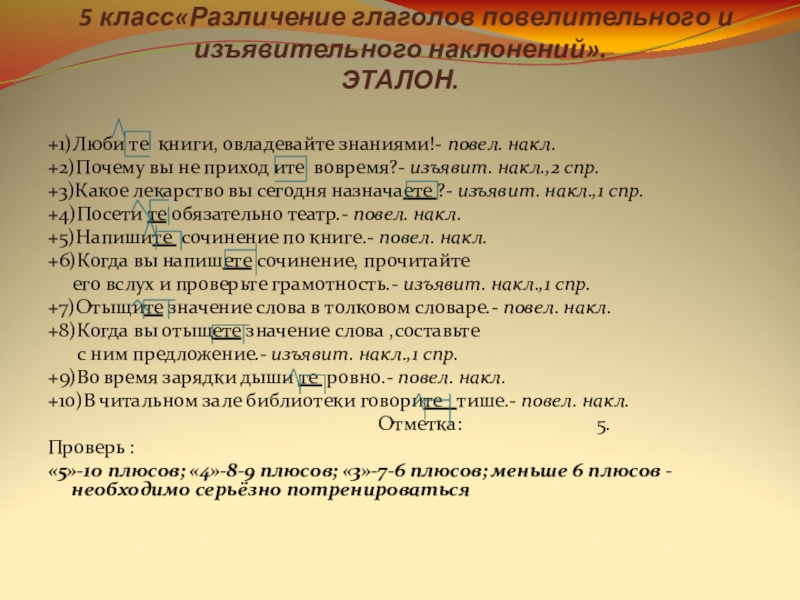 «Различение глаголов повелительного и изъявительного наклонений во 2-м лице множественного