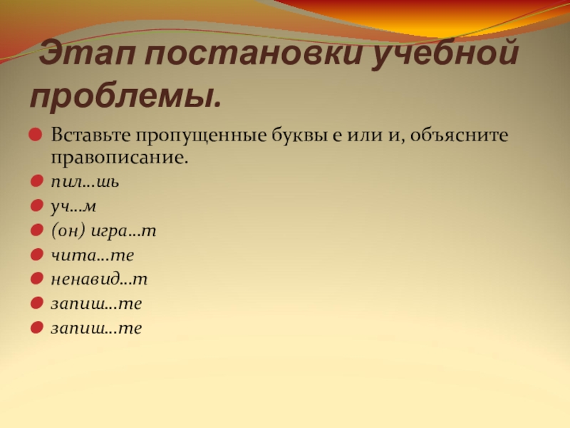Научить определять правильное написание –ите и –ете у глаголов указанных форм;