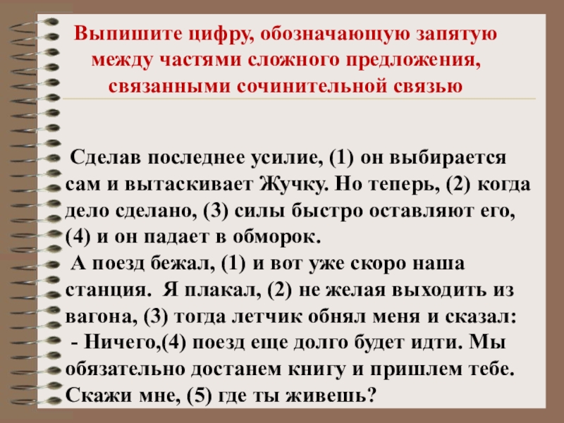 Слайд 18Выпишите цифру, обозначающую запятую между частями сложного предложения, связанными сочинительной связью