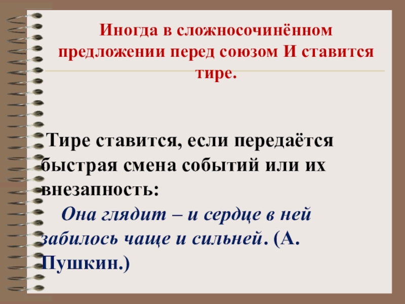 Слайд 10Иногда в сложносочинённом предложении перед союзом И ставится тире.