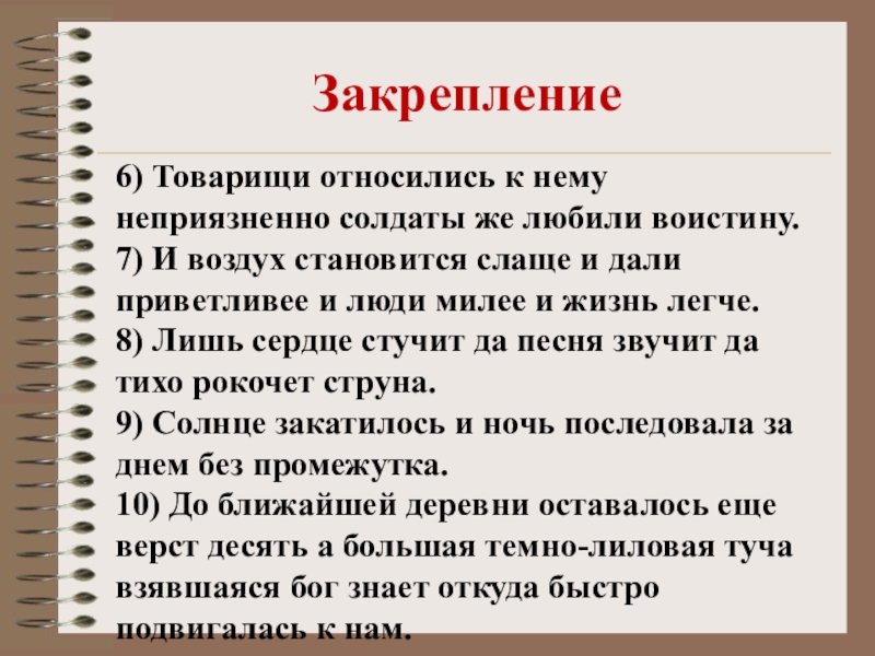 6) Товарищи относились к нему неприязненно солдаты же любили воистину.