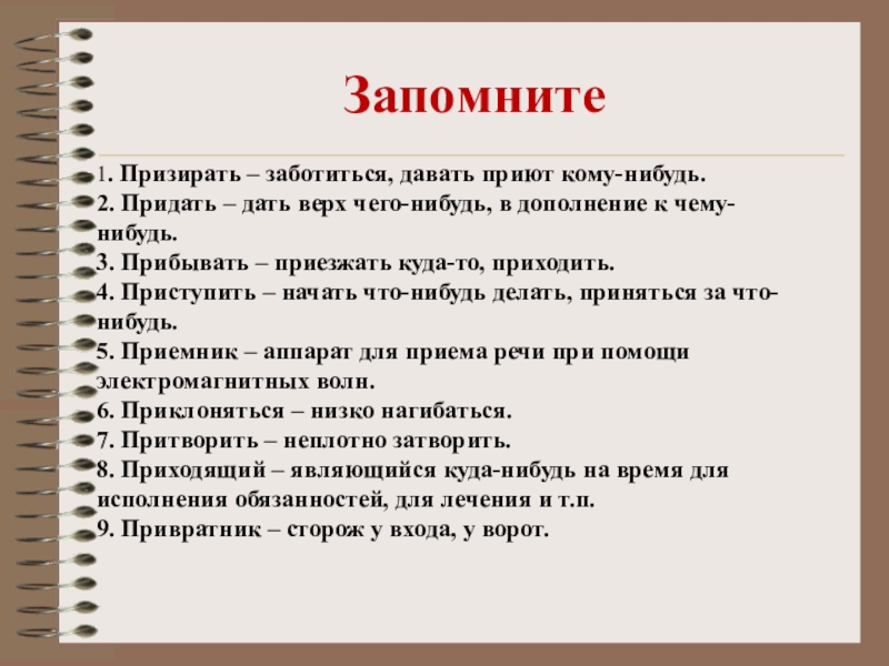 1. Призирать – заботиться, давать приют кому-нибудь.