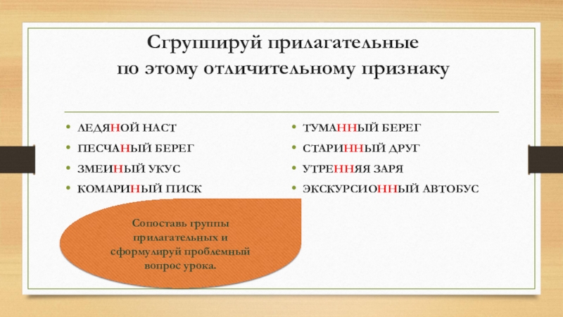 Сопоставь группы прилагательных и сформулируй проблемный вопрос урока.