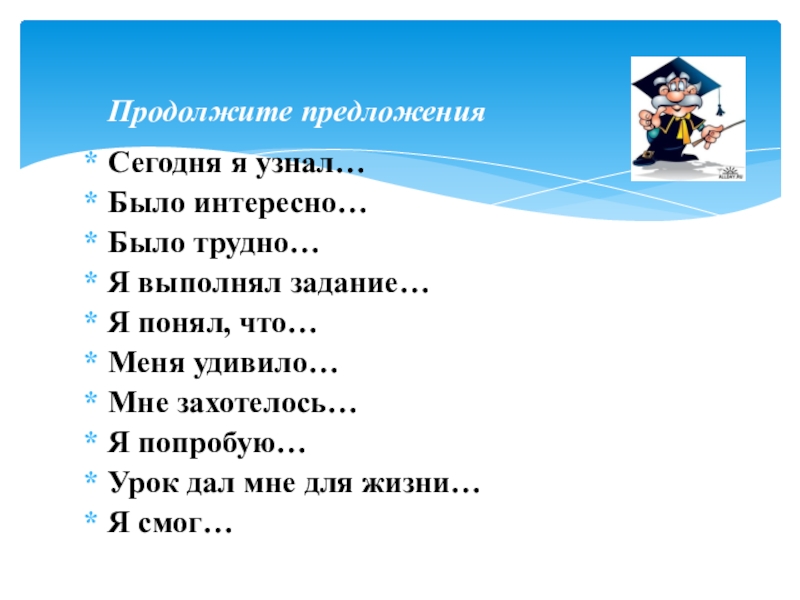 Продолжите предложения