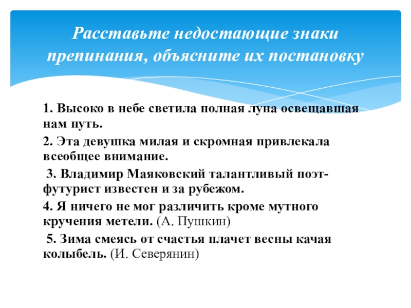 Расставьте недостающие знаки препинания, объясните их постановку