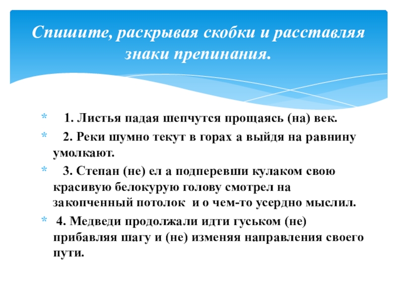 Спишите, раскрывая скобки и расставляя знаки препинания.
