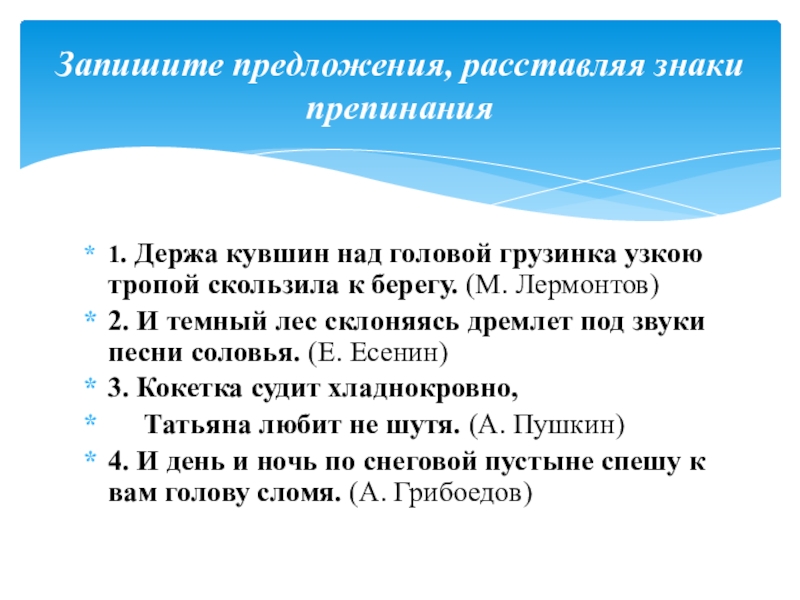 Запишите предложения, расставляя знаки препинания