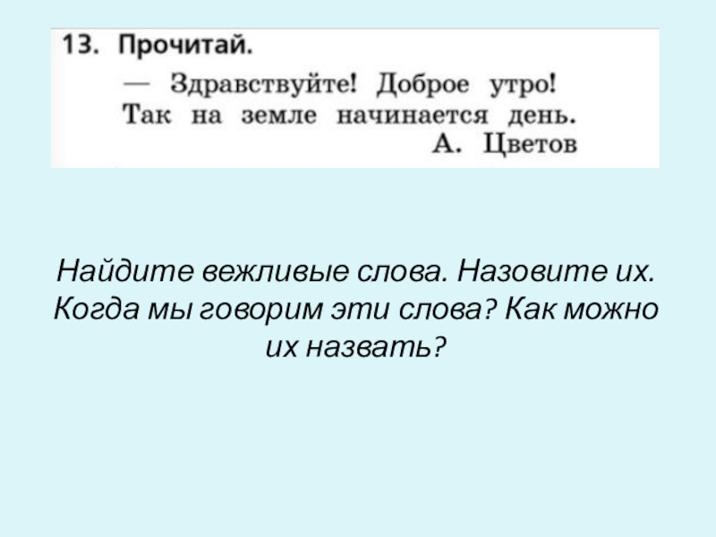Слайд 5Найдите вежливые слова. Назовите их. Когда мы говорим эти слова? Как