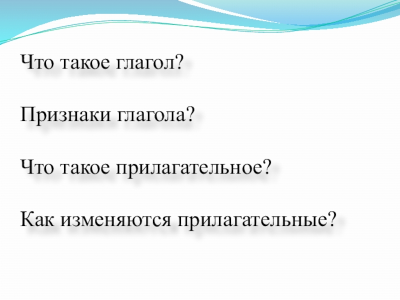 Слайд 3Что такое глагол? Признаки глагола? Что такое прилагательное? Как изменяются прилагательные?