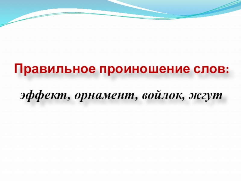 Слайд 9  Правильное проиношение слов: эффект, орнамент, войлок, жгут