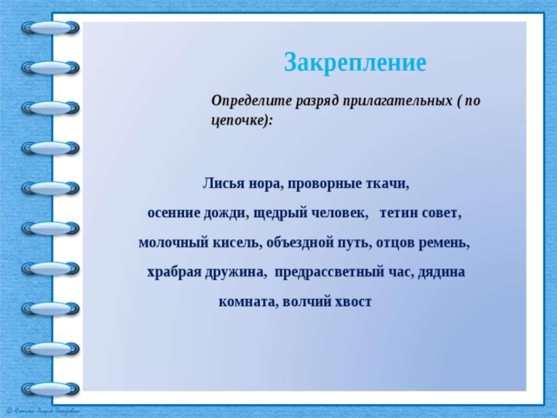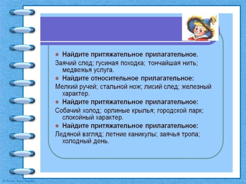 Ответы.1.Относительное.2.Относительное.3.Качественное.4.Относительное.5.Притяжательное.6.Качественное.7.Качественное.8.Притяжательное.9.Качественное.10.Относительное. 11.Относительное. 12.Притяжательное.