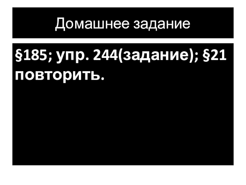 Домашнее задание§185; упр. 244(задание); §21 повторить.