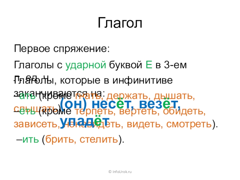 Глаголы с ударной буквой Е в 3-ем л. ед. ч.