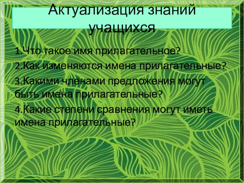 Актуализация знаний учащихся