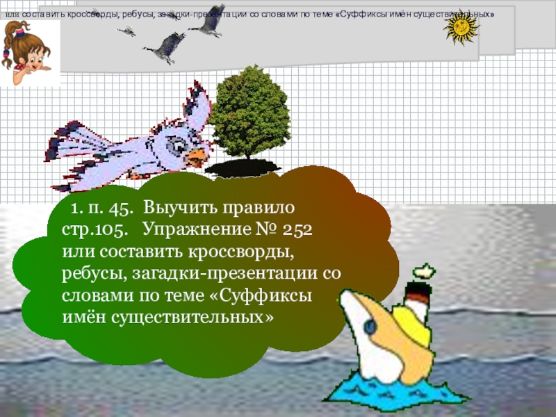 или составить кроссворды, ребусы, загадки-презентации со словами по теме «Суффиксы имён существительных»