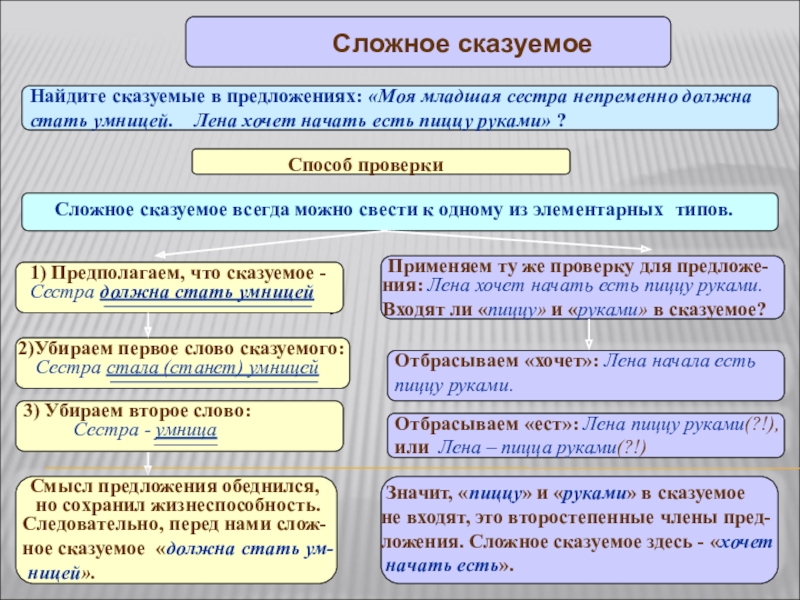 Помните: сложное сказуемое всегда можно свести к одному из элементарных типов.